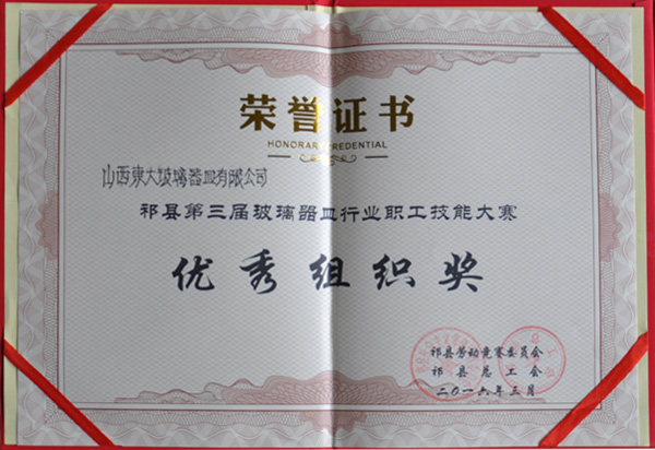 2014年被“中國日用玻璃協會授予高腳帝王杯、公爵杯榮譽稱號”